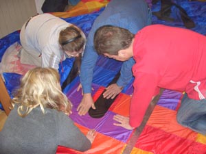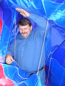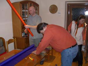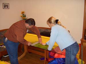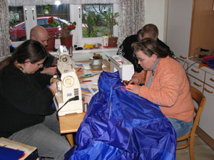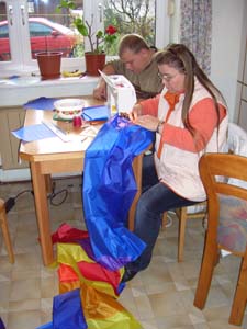 Ober -und Unterseite ist der Einsatz im Körperinneren gefragt,die Leinen werden von Joachim endgültig fertig angeknüpft. |