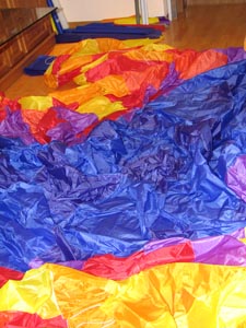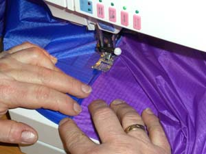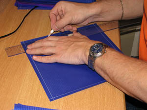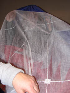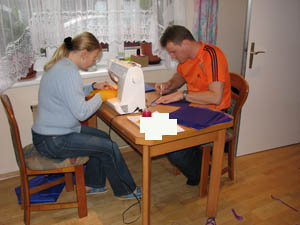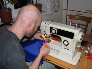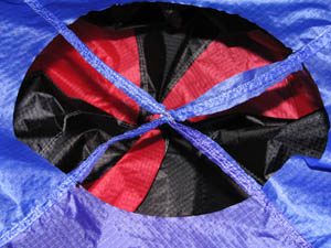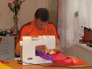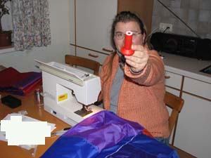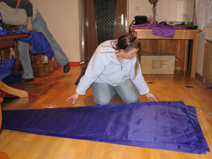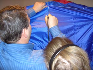 Die nötigen Löcher für die Abspannungen sowie die Waage werden ins Tuch geschmolzen. |