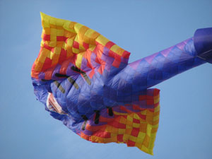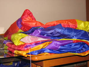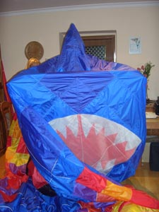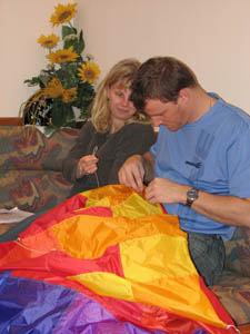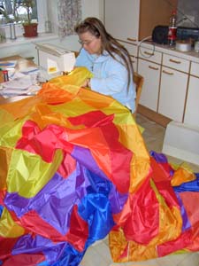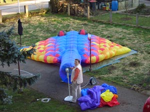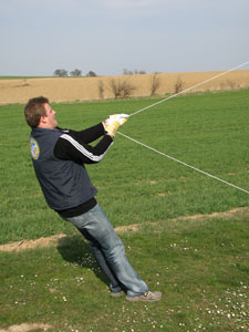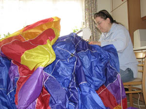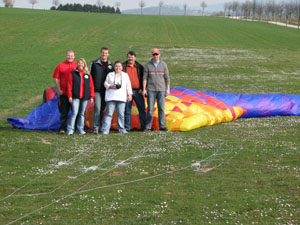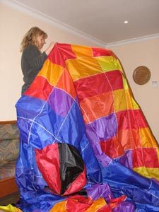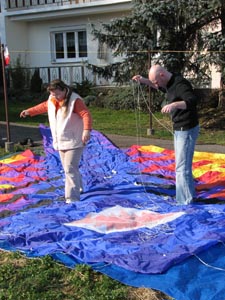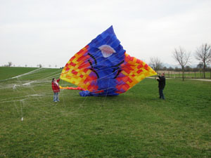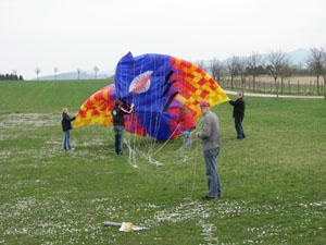 | 18.März 2007- Vorbereitungen zum Jungfernflug | Nicht besonders viel Wind- aber er füllt sich,... |