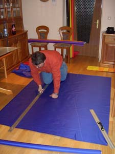 Juhuu, endlich mal ein Sonnentag! Im Freien werden die Waageschnüre angebracht. |