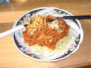 | Zwischendurch mal eine Stärkung mit Spaghetti á la Alexandra | Die Stoffmassen werden immer bedrohlicher ;-)) |