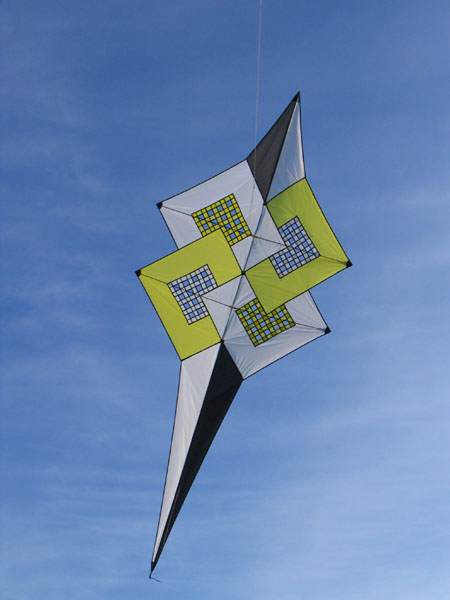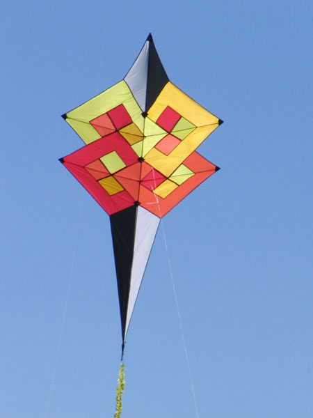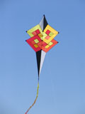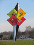 Bei leichtem gleichmäßigem Wind steht er recht ruhig am Himmel, bei